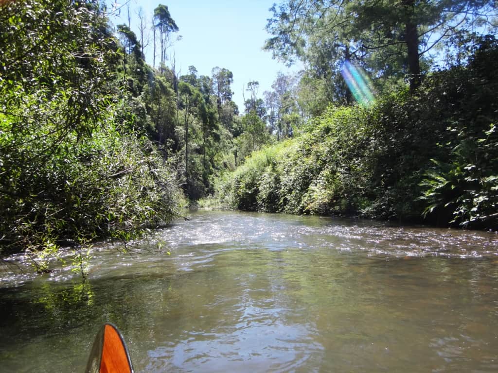The Morwell River is a very small river which rises behind the village of Boolarra in Sth Gippsland. The canoeable section (paralleling the River Rd) is (roughly) from the East Branch confluence (bridge) down to Fox and Fanke’s Road – though you can go down to the next bridge (a private driveway – luckily owned by a couple of friends of mine!)