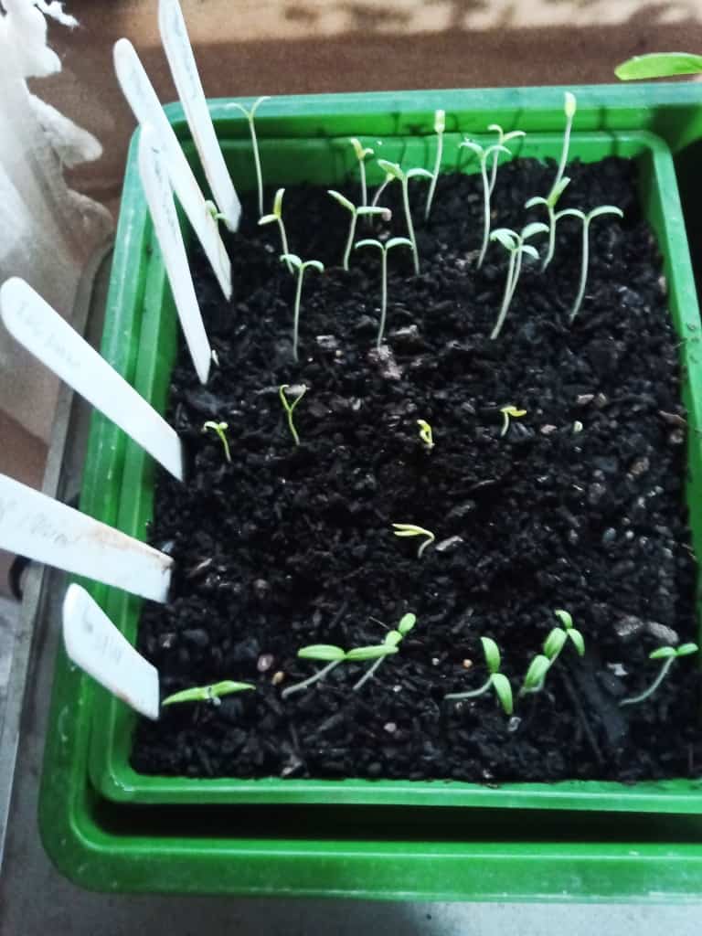 You can get your plants started early with a $10 propagator next to a window. This one cost more like $20 and has bottom heat (recommended – especially for growing cuttings). Here you see several varieties of tomato, eggplant and capiscum already up in less than a week. They will be in the greenhouse in a bit over a week. Some will produce crops by the end of September!
