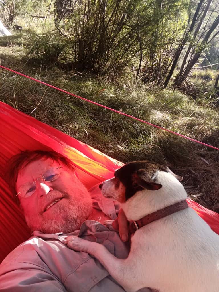 Just camping alone with my dog, Spot in the trackless Victorian Alpine wilderness (2021).