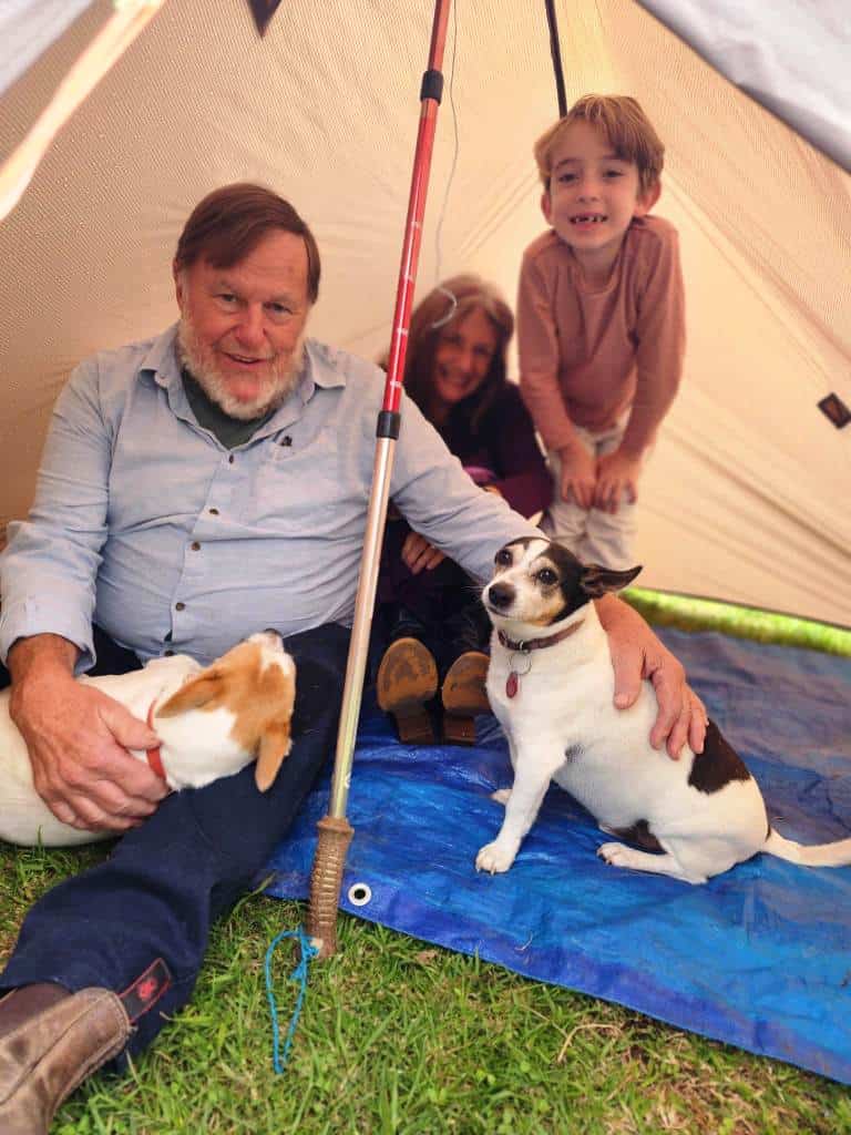 We had sat in it to see how roomy it was – could have fitted another three of us in there, and more dogs! Note: my feet are protected from the rain in the entry.