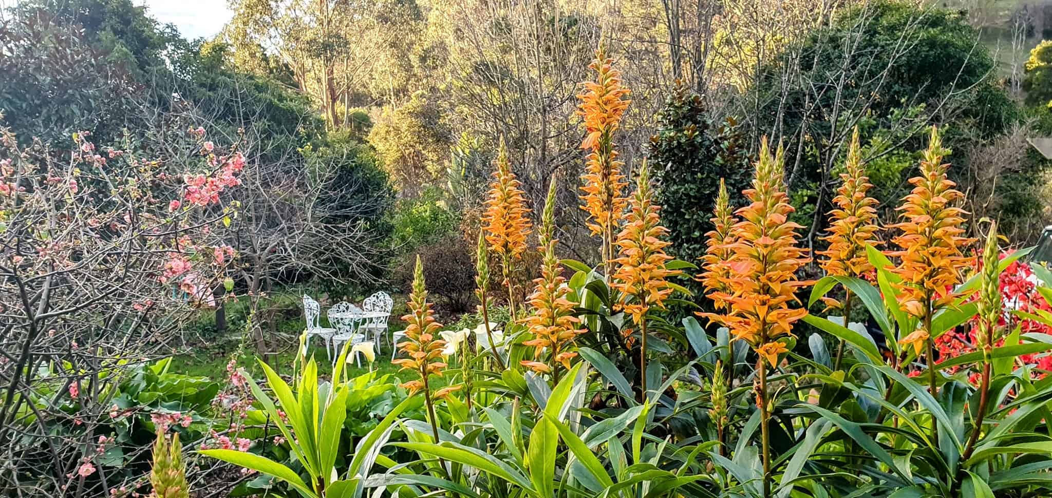 The added bonus is all the honey-eaters that spend their mornings clambering over these winter treats, the canary island foxgloves (orange spires) in particular. They are my morning coffee entertainment, watched from my dining table window.
