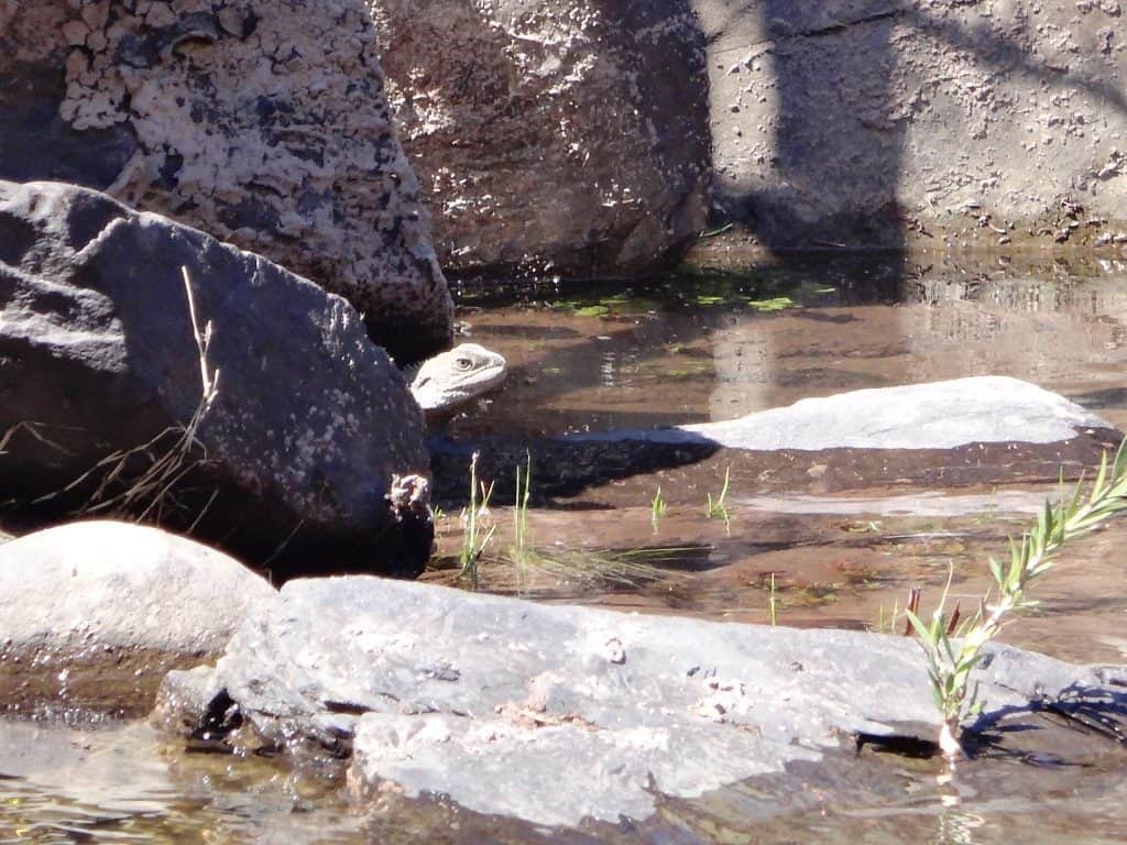 About an hour in the river splits. I took the right fork with this entertaining drop. The left fork used to have a fun chute, but there may not be enough water going down it now. At the bottom of this drop there is a vast swimming hole on a right hand bend (complete with this turtle). A lovely spot to camp.
