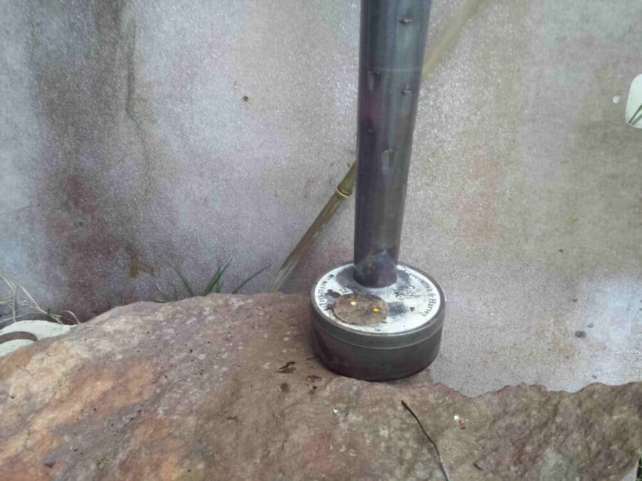 I am delighted that Tim Tinker has been squirreling away at improving the design and functionality of (his) tiny tent stoves of which he has designed so many. His latest foray involves miniaturising an oil (or smudge) burner for heating a tent utilising a a tiny Cavendish & Harvey fruit drop tin which must be only about 1 1/2″ high by 4″ wide  – 40 x 100mm (if that). The whole thing weighs a mere 134 grams.