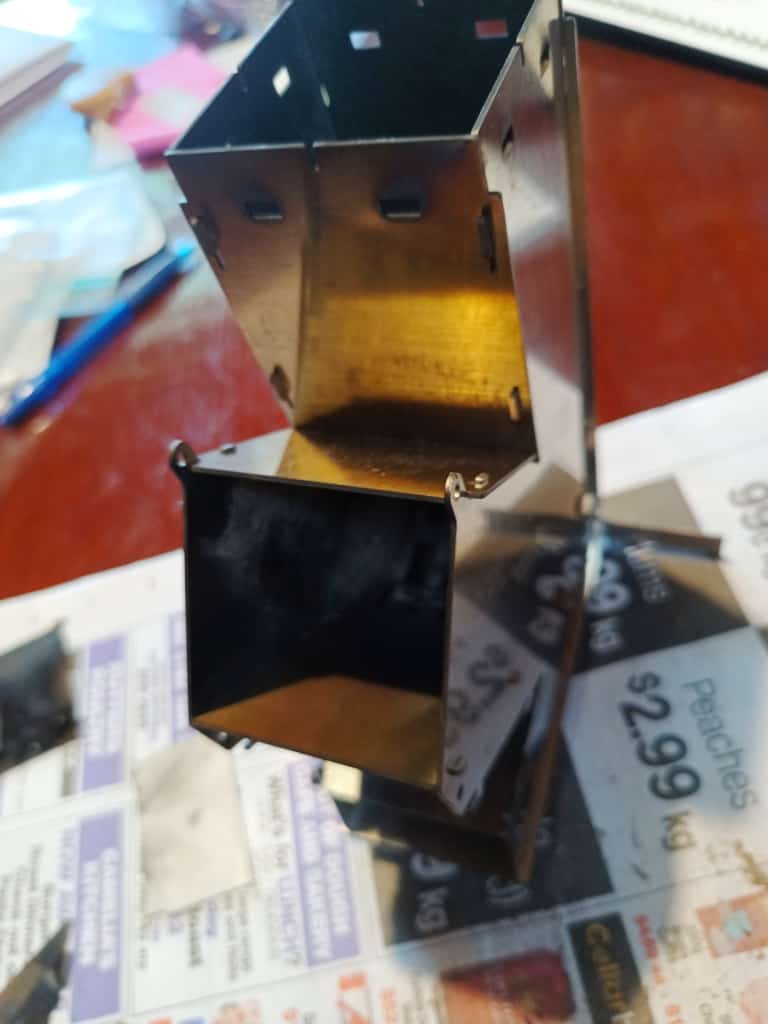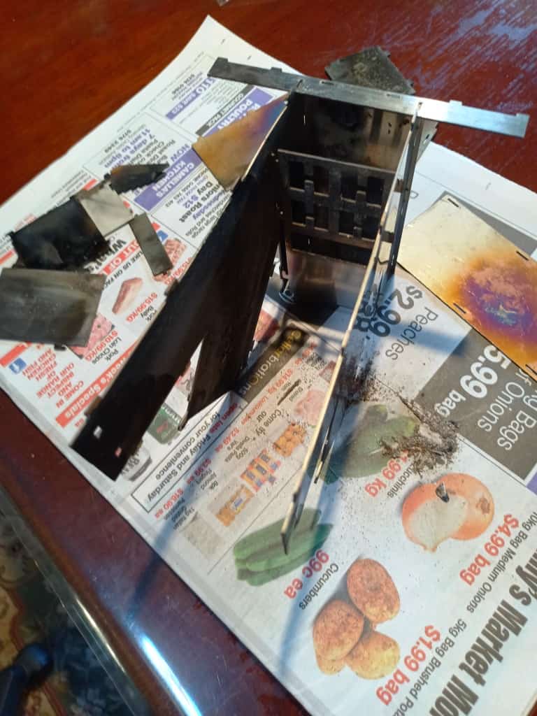 The whole thing weighed a little over 600 grams including the (flat) carry sack. It might not be ultralight in comparison eg with the 85 gram Suluk Stove ( a lightweight version of the Bushbuddy) or my DIY $4 & 20 Gram Roll Up Titanium Stove which will be undergoing further refinements now (because of it) but it is very solid and should last several years.