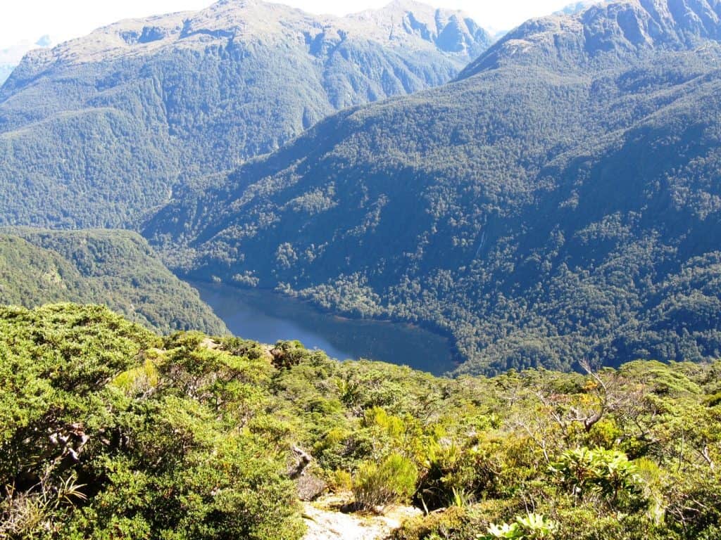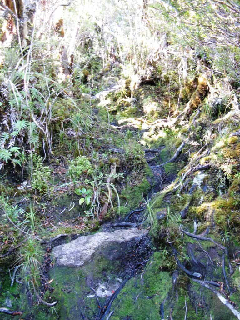 BTW: The deer culler’s used to use the Jane Burn (just downstream of the current track) to access the tops and travel across to Lake Roe etc. It is a much easier walk but would require some bush-bashing. Val McKay (one of them and who used to run the Dusky Transport for many years) told me that the DOC asked him to mark a route straight up from the Loch to a vantage point where you could see the fiords once when he was coming out. He obliged blazing the trees as he walked straight up with an axe. Of course, he expected that they (DOC) would zig-zag the track route when they (eventually) created it but all they did was nail the orange triangles to the trees – which is why this is such an awful section today!