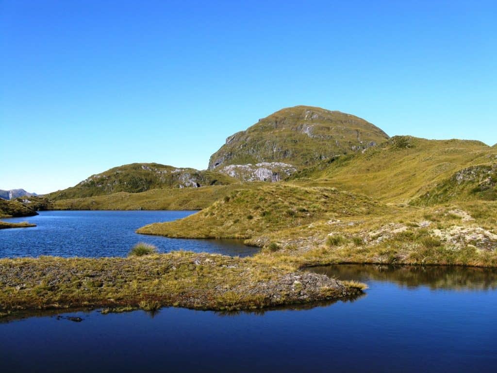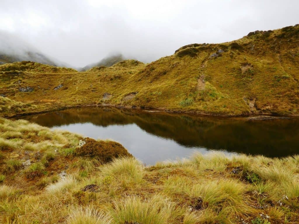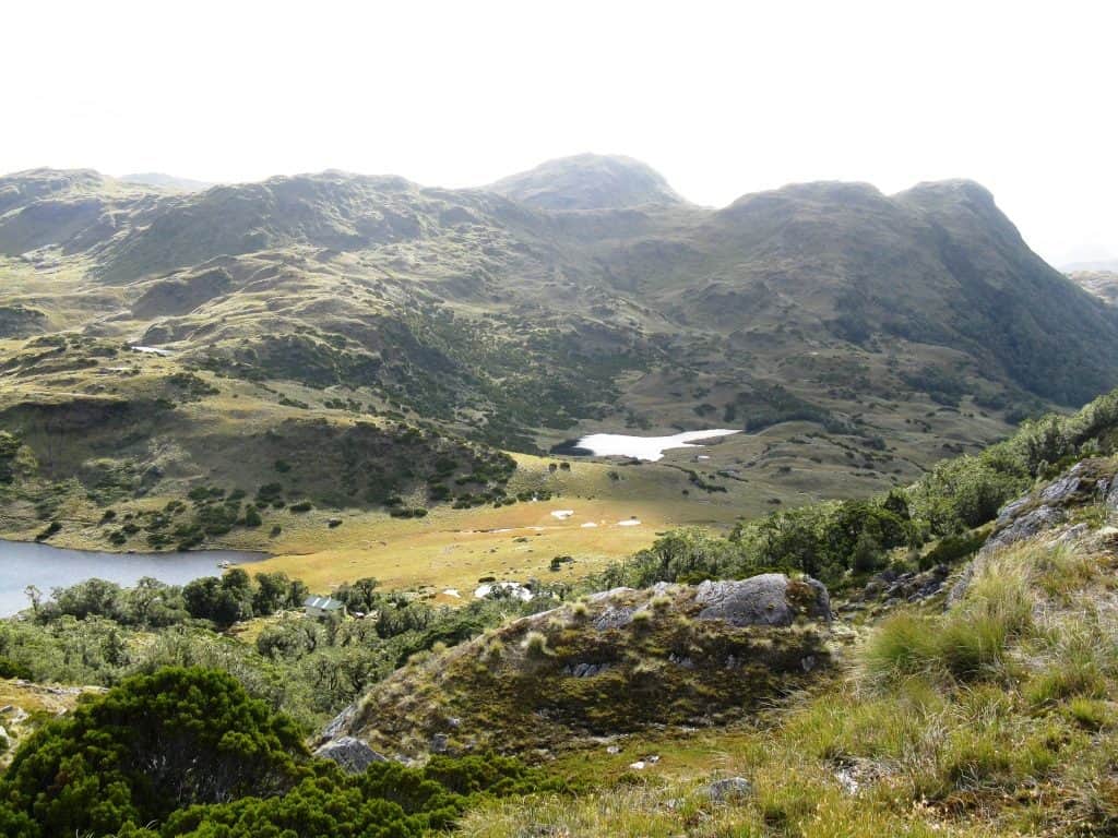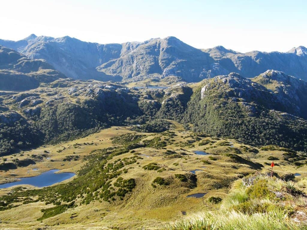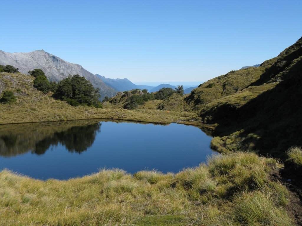 It will take you slightly longer to walk from Lake Roe to Loch Marie than it did from Halfway Hut, though this will come as a surprise when you seem to have walked 3/4 of the way there over pleasant snow-grass tops sprinkled with myriad jewel lakes and you are gazing down on the Loch and its tree trunks just a kilometre below you. That last kilometre is a doozy!