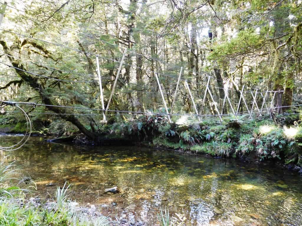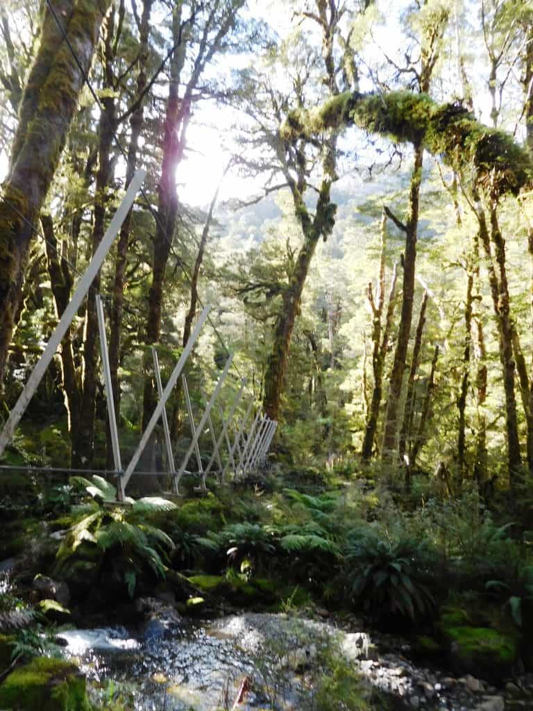 Lunch at the first walk wire. I was in no hurry. My new Icebreaker ‘Departure 2’ wool shirt (http://au.icebreaker.com/en/midlayers/-departure-ii-long-sleeve-shirt-plaid/103036.html?dwvar_103036_color=301) worked wonderfully in Fiordland. It was soft and comfortable and protected me from sandflies. The breast pocket was just the right size for my pocket camera (Nikon Coolpix S7000). It was a beautiful temperature for the days’ walking (about 15C) and had no unpleasant smell to it even after more than a week of wear without washing (it did get wet a couple of times though – as when I fell over in the Jane Burn for example). Once wet it did not strike cold after less than a minute, and dried out completely (from soaking) on my back in less than an hour. Highly recommended. It now comes in a beautiful green and black plaid – something for my Xmas list!