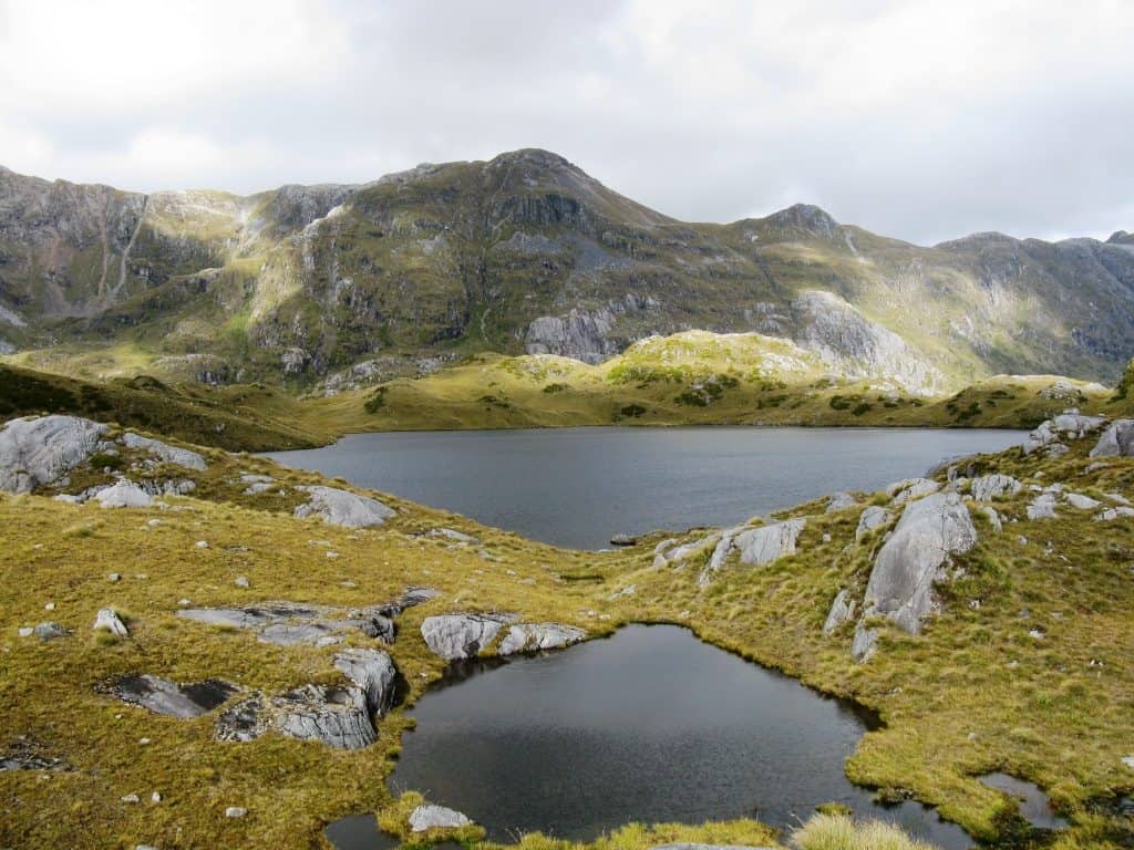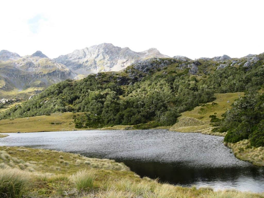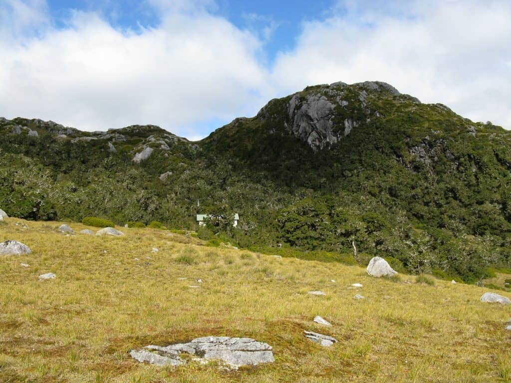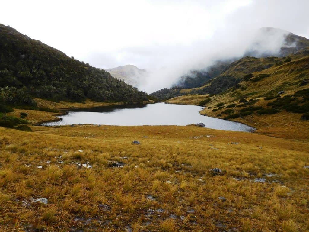 Lake Roe Hut is just off to the right behind Lake Laffy snuggled amongst the leatherwoods.