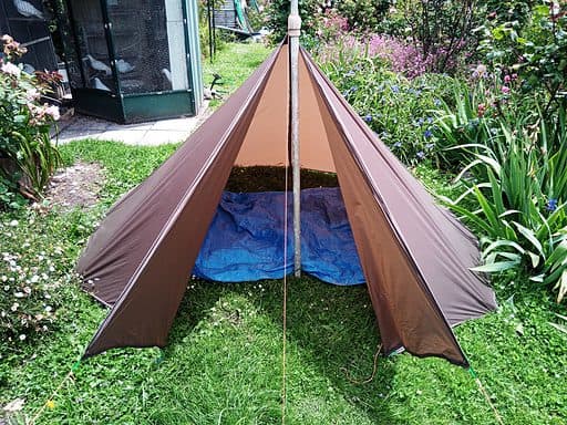 The Deer Hunter's Tent: I have just been making a new version of this tent in some 1.25 oz silnylon I bought from China for $4/metre. This makes a roof at exactly 274 grams ( have weighed it) in a stretched version which I will be posting about soon (plus patterns to download). It allows for a ‘bed’ area of more than 7′ x 5′ plus a vestibule, so about 45 square feet all up.. This roof area would weigh 205 grams in the .93 oz fabric (US$8/yd) and 170 in the .77 (US$16/yd). I doubt the double cost is worth the 30 grams saving. When I add a floor to the existing roof the whole thing will weigh around 420 grams (including tie-outs). In the .93 fabric the tent with floor it will weigh 304 grams (250 for the .77 oz)